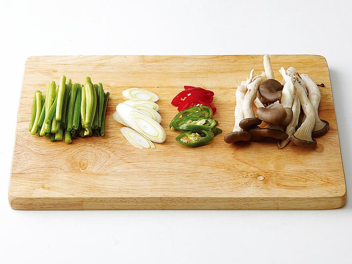 대파와 고추는 어슷 썰고,