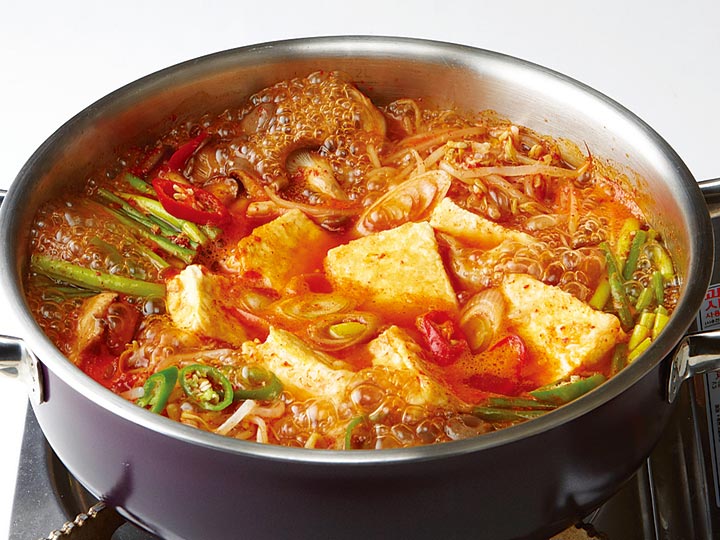 중간 불에 올린 뒤 끓으면 두부를 넣고