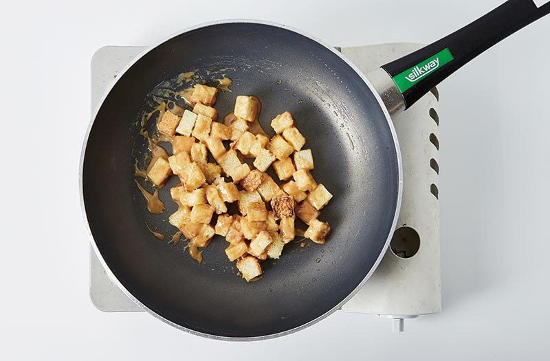 중간 불로 달군 마른 팬에 식빵을 넣어 모든 면을 노릇하게 구워 꺼낸 뒤 한 김 식히고,