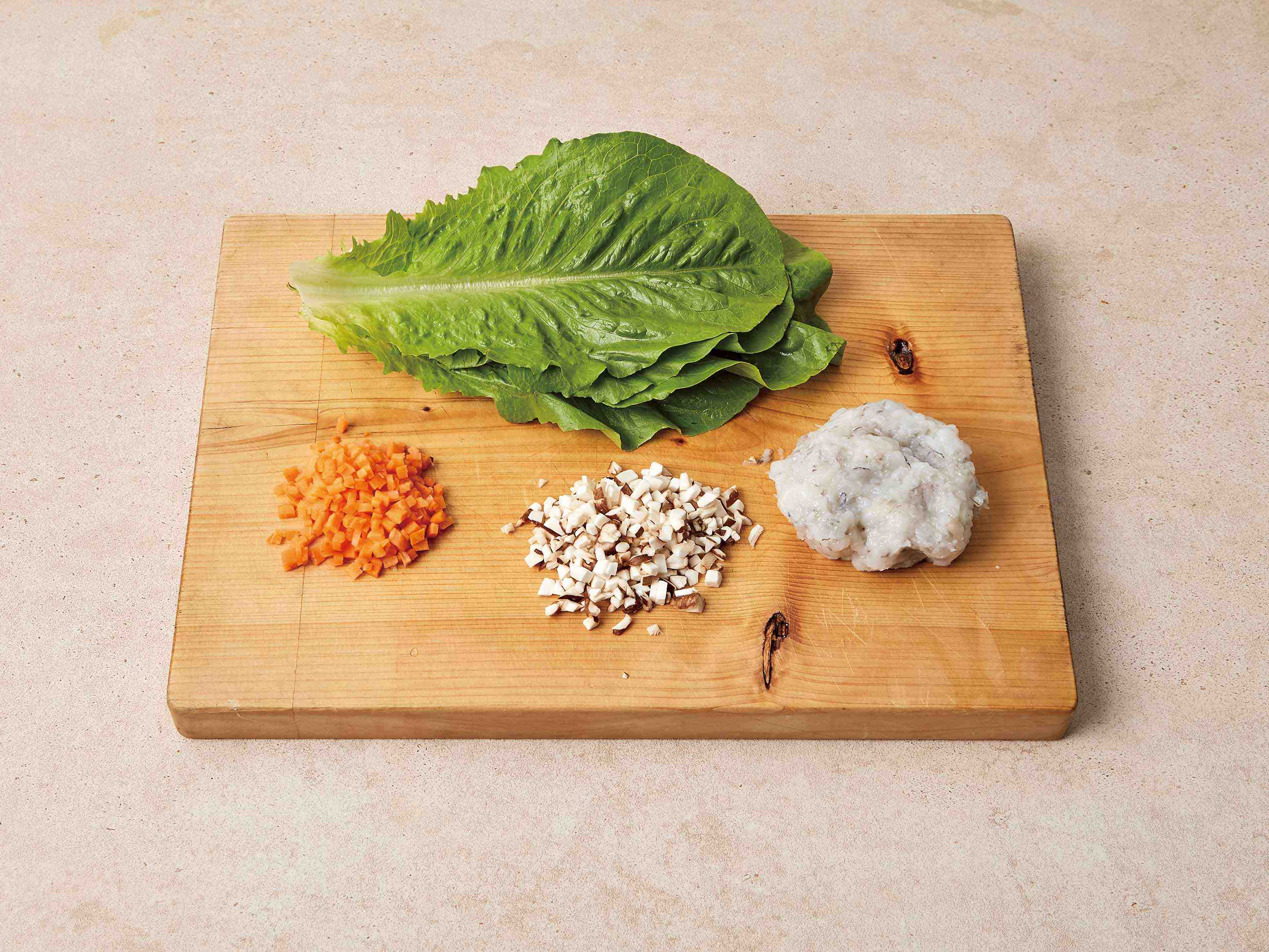 다진 당근, 표고버섯, 새우살,