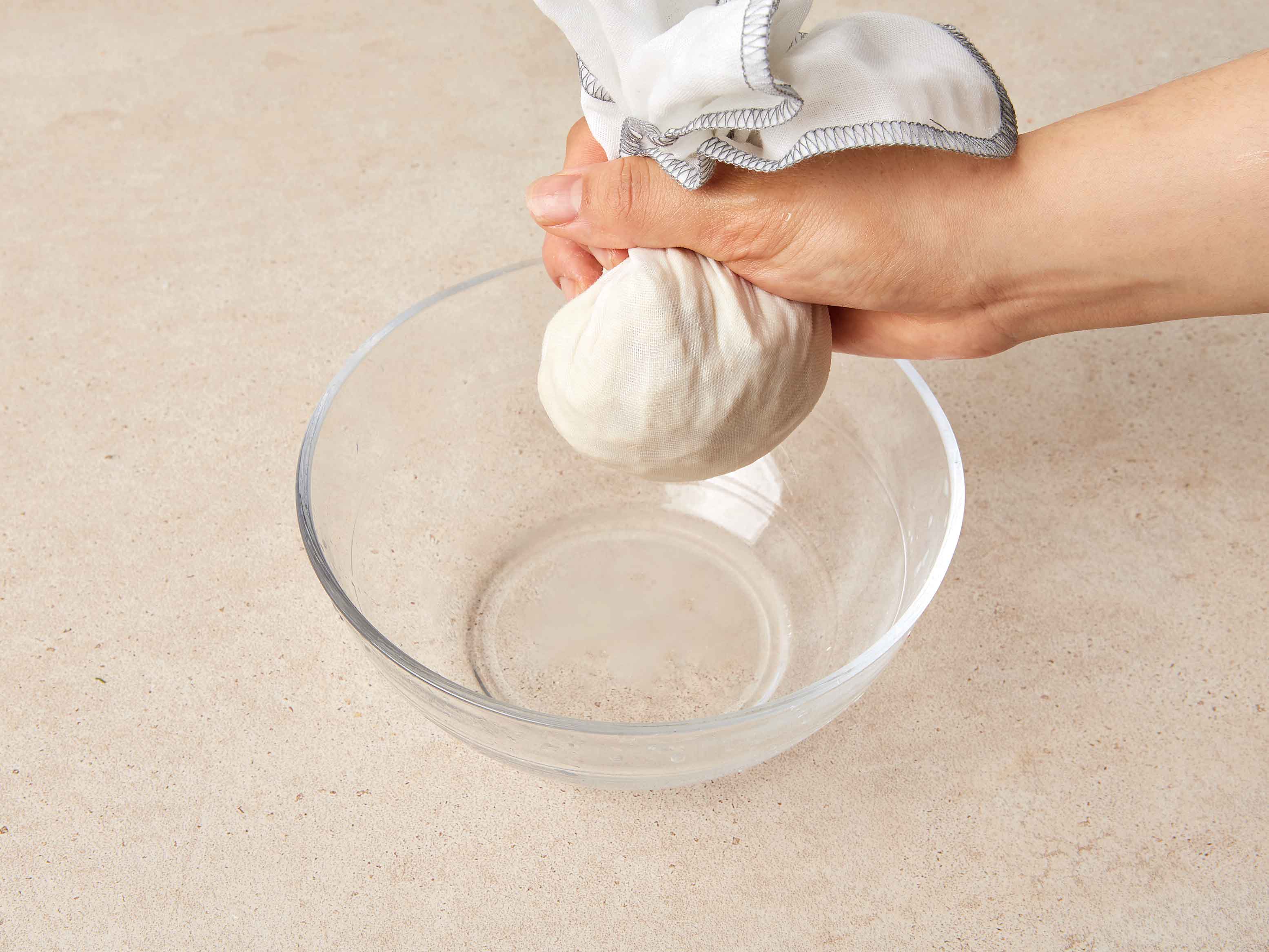 두부는 칼등으로 으깬 뒤 면포에 넣어 물기를 꼭 짜고,