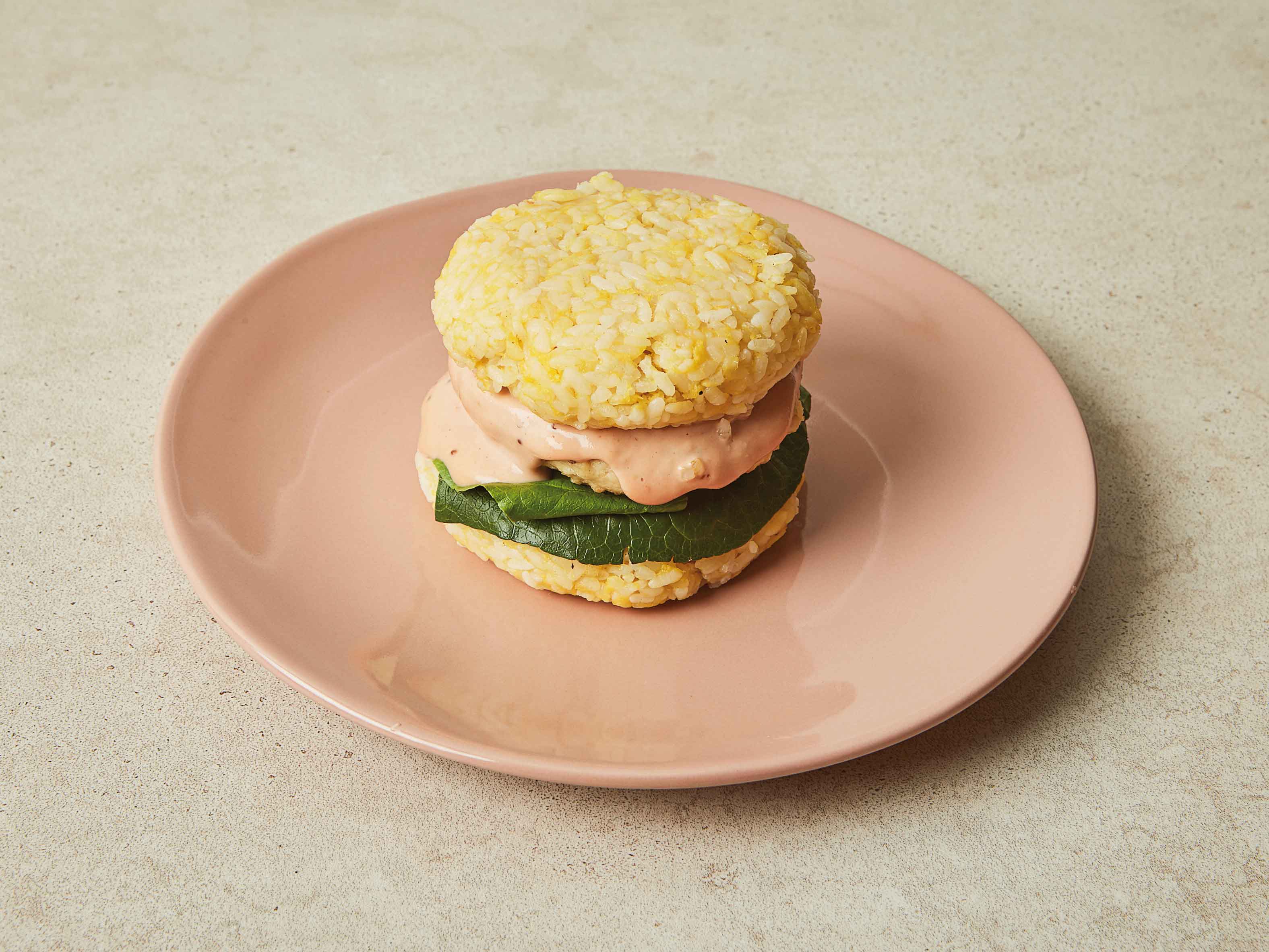 달걀볶음밥은 동그랗게 뭉쳐 햄버거빵 모양을 만들고,