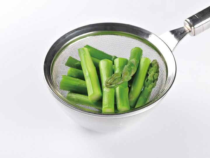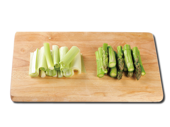 큰 아스파라거스는 먹기 좋게 3등분하세요.
