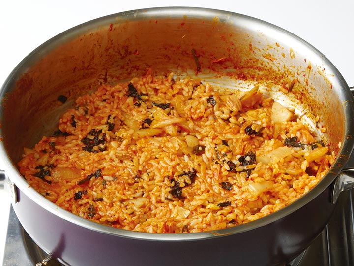 볶음밥 재료=밥(2공기), 다진 김치(⅓컵), 김가루(½컵),