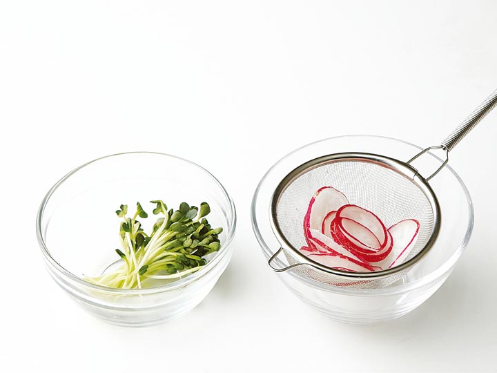 무순은 깨끗이 씻고, 래디시는 얇게 썰어