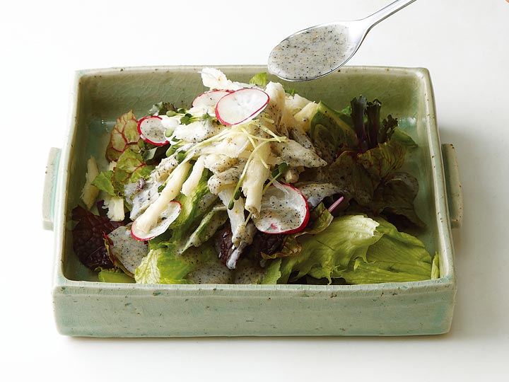 검은깨드레싱을 뿌려 마무리.