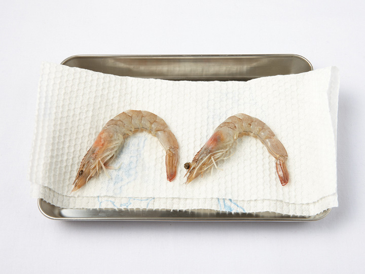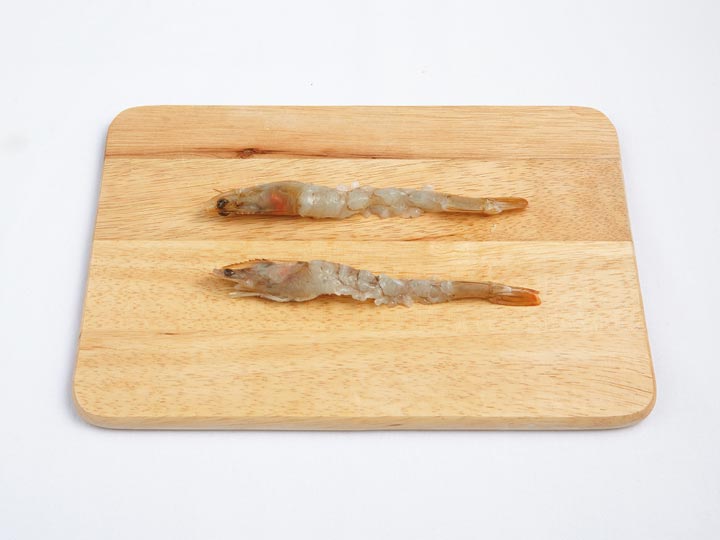 껍질을 벗긴 뒤 내장과 꼬리 중앙에