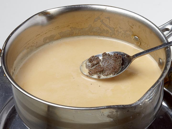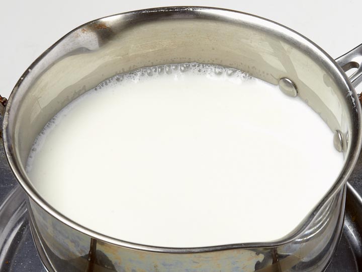 냄비에 우유, 생크림, 설탕을 넣어 중약 불로 끓이고,