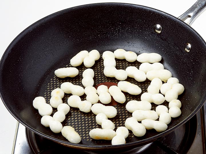두부에 녹말가루를 꼼꼼히 입혀야 튀길 때 기름이 튀지 않아요.